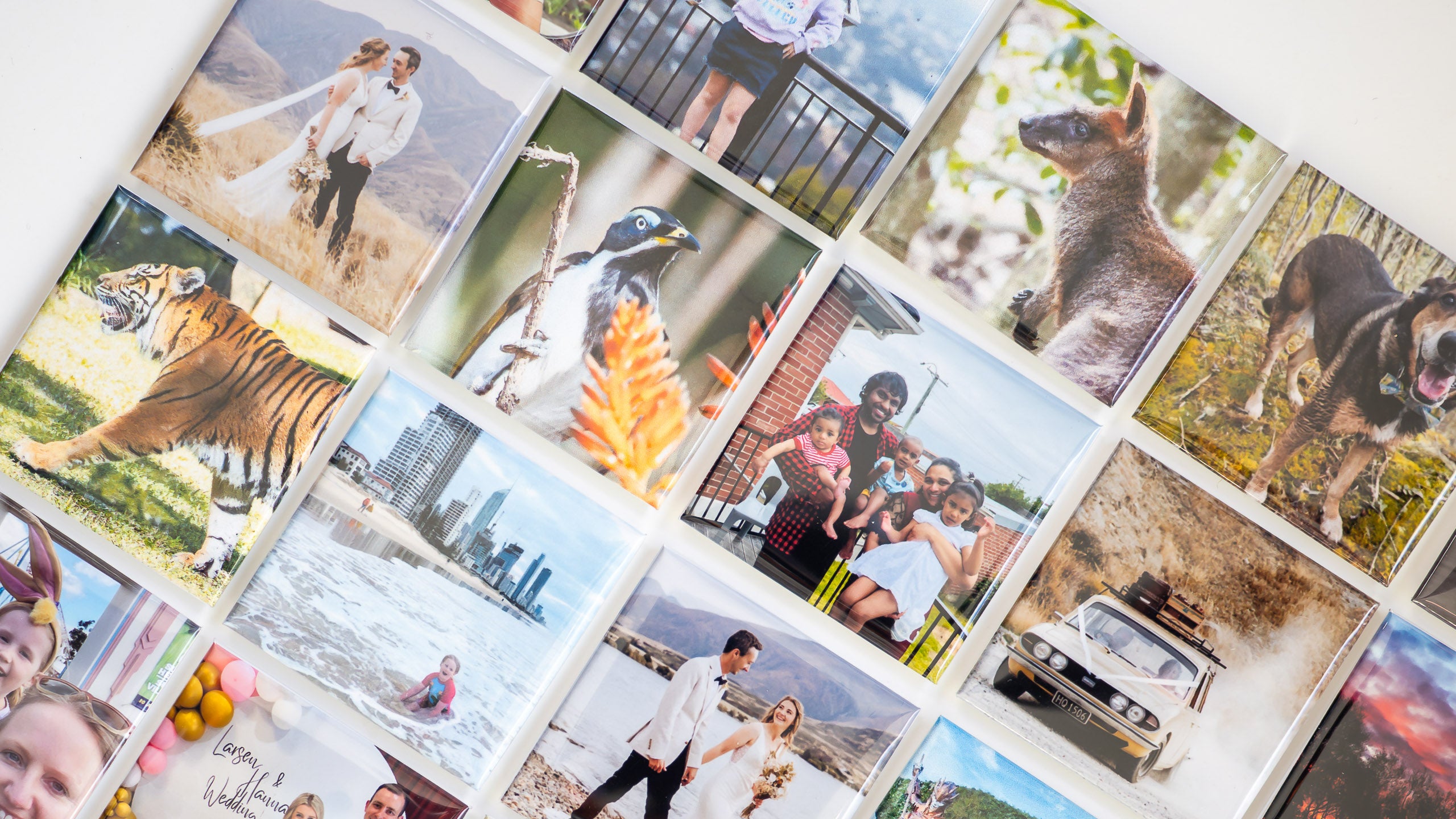 You can personalise your photo magnets by uploading your favorite photos during the ordering process. The software will prompt you to crop your photo to the square shape suitable for the photo magnet.